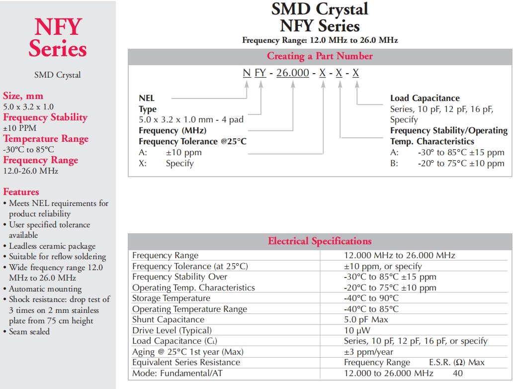 | Mode: Fundamental/AT | 12.000 to 26.000 MHz 40 | |||||||||||||||||||||||||||||