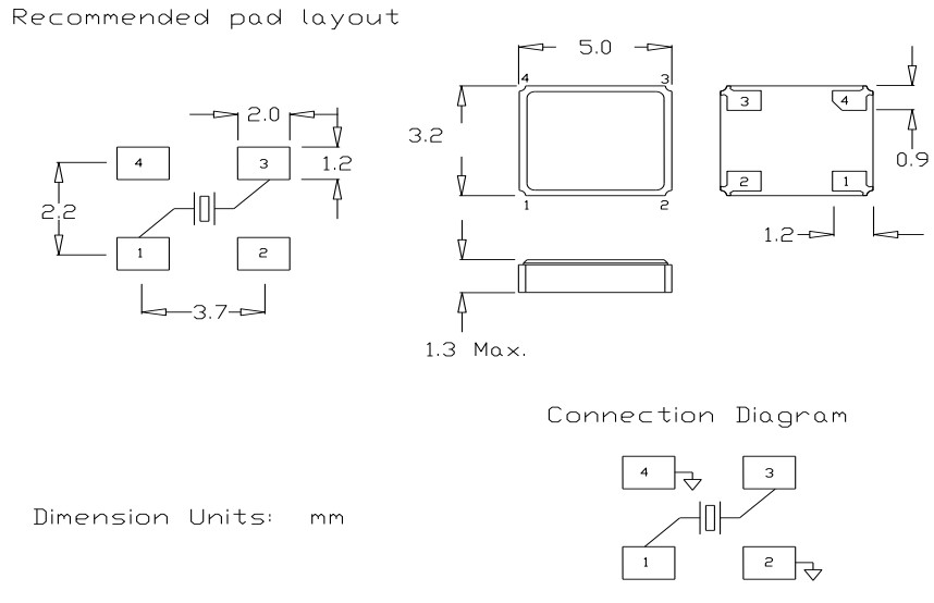 QCM40-21AF18pF-26.000MHz,26MHz,5032mm,QVS諧振器,QCM40,藍(lán)牙模塊晶振,尺寸圖
