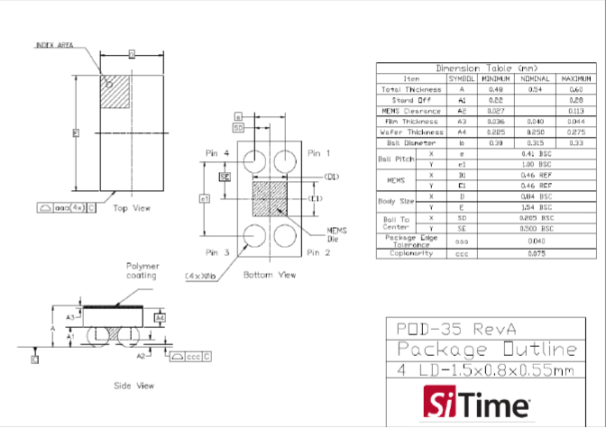 SiTime溫補晶振,SiT1576AI-J1-25-0512.288000Q,低抖動晶振,ULP輸入設備6G晶振,小體積晶振,尺寸圖