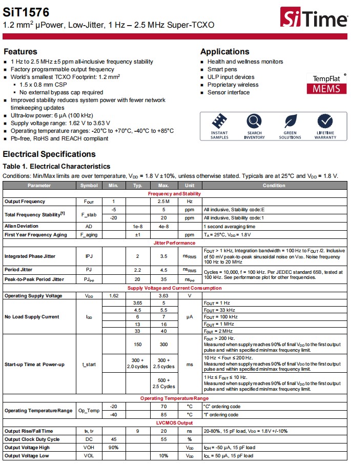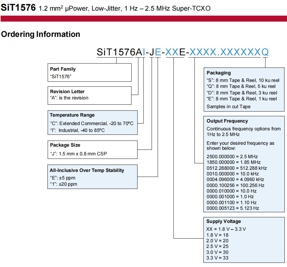 SiTime溫補晶振,SiT1576AI-J1-25-0512.288000Q,低抖動晶振,ULP輸入設備6G晶振,小體積晶振,參數表
