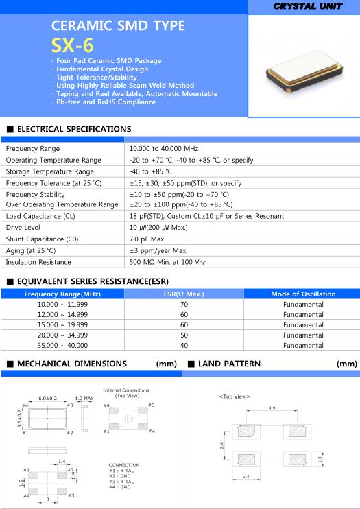 SX-6石英晶體,Sunny晶振,SN18130M7-20.00000-T&R諧振器,貼片晶振本身體積小,超薄型石英晶體振蕩器,特別適用于有目前高速發(fā)展的高端電子數(shù)碼產(chǎn)品,因為晶振本身小型化需求的市場領(lǐng)域,小型,薄型是對應(yīng)陶瓷振蕩器(偏差大)和普通的石英晶體振蕩器(偏差小)的中間領(lǐng)域的一種性價比較出色的產(chǎn)品.產(chǎn)品廣泛用于筆記本電腦,無線電話,衛(wèi)星導(dǎo)航SSD,USB,Blu-ray等用途,符合無鉛焊接的高溫回流焊曲線特性.