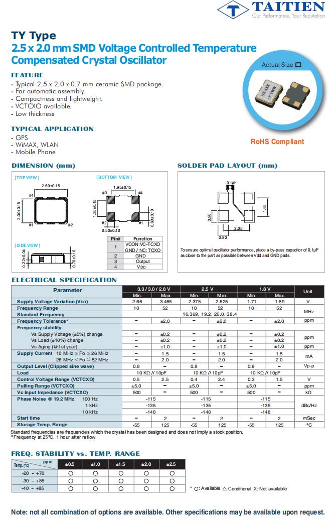 TYKTALSANF-26.000000\TCXO\1.8V\2520mm\Taitien 參數表