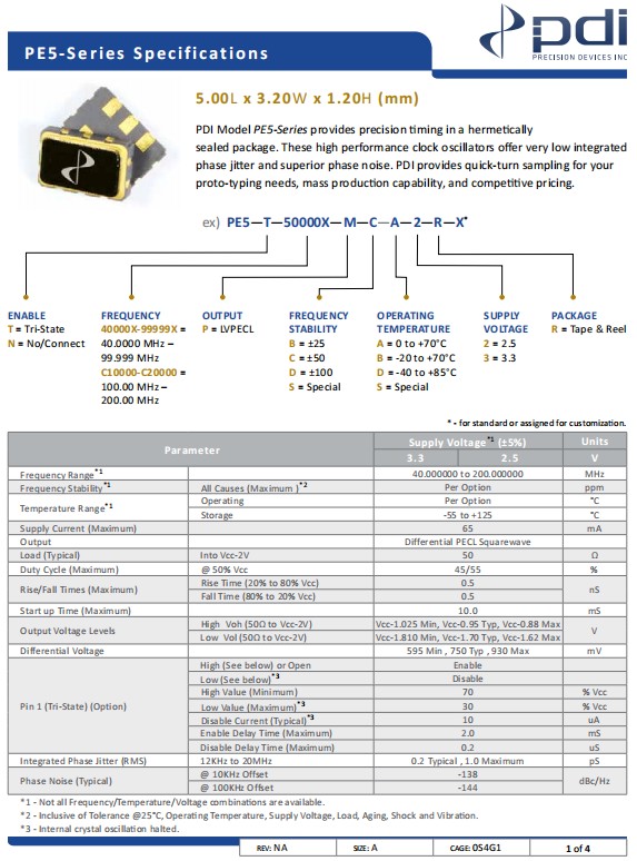 Wi2wi低抖動晶振,PE5-T-75000X-M-C-D-3-R-X,差分晶振,參數表