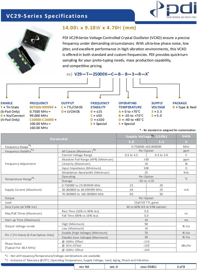 威爾威VCXO振蕩器,V29-T-48000X-C-B-B-3-R-X,VC29低功耗晶振,參數(shù)表