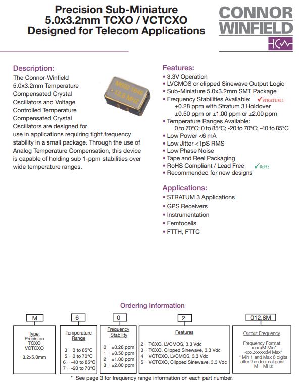 | M602-049.152M | 康納溫菲爾德TCXO振蕩器 | M602 | 49.152MHz | -40°C ~ 85°C |