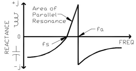 第三,反諧振點(diǎn)或并聯(lián)諧振f a,是運(yùn)動(dòng)電感L1與C1和C0的并聯(lián)組合諧振的地方。 第四,f a表示為
