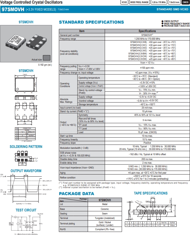 SMI晶振,有源晶振,97SMOVH壓控振蕩器.有源石英晶振,外觀完全使用金屬材料封裝的,產(chǎn)品本身采用全自動石英晶體檢測儀,以及跌落,漏氣等苛刻實驗.產(chǎn)品本身具有高穩(wěn)定性,高可靠性的石英晶體諧振器,焊接方面支持表面貼裝,外觀采用金屬封裝,具有充分的密封性能.