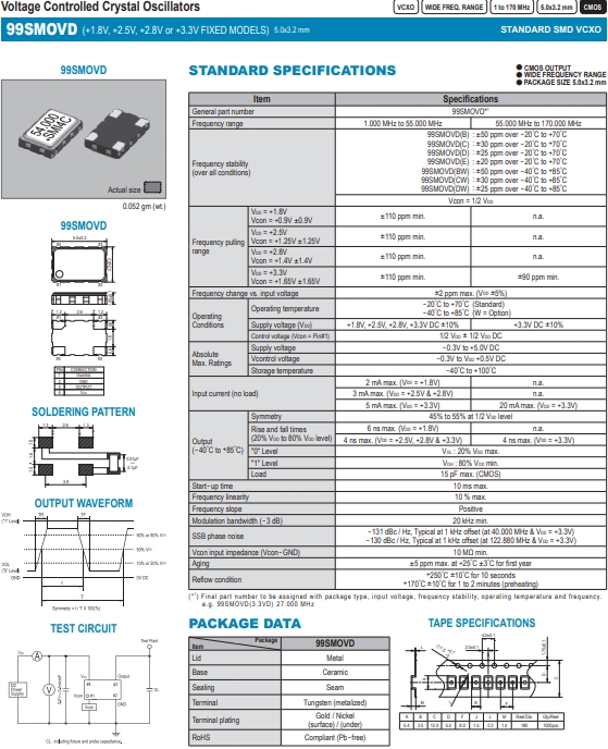 SMI晶體,石英晶體振蕩器,99SMOVD晶振.有源貼片石英晶振外觀使用金屬材料封裝的,具有高穩(wěn)定性,高可靠性的石英晶體諧振器,晶振外觀本身使用金屬封裝,充分的密封性能,可確保其高可靠性,采用編帶包裝,外包裝采用朔膠盤(pán),可在自動(dòng)貼片機(jī)上對(duì)應(yīng)自動(dòng)貼裝等優(yōu)勢(shì).