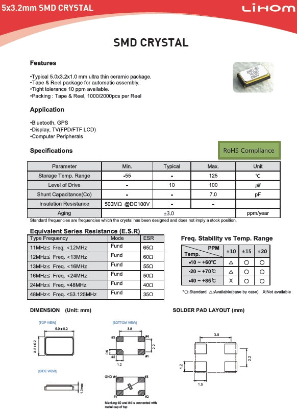| Lihom晶振 | 單位 | BMC-50晶振 | 石英晶振基本條件 |