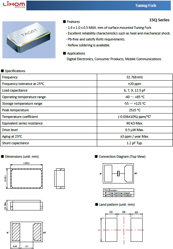 進口1610晶體諧振器可能會在某些條件下受到損壞.例如從桌上跌落或在貼裝過程中受到沖擊.如果產品已受過沖擊請勿使用.