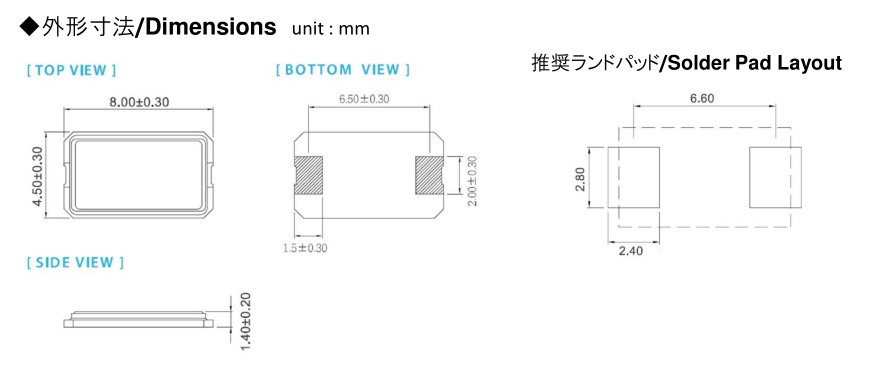 進口晶振可能會在某些條件下受到損壞.例如從桌上跌落或在貼裝過程中受到沖擊.如果產品已受過沖擊請勿使用.