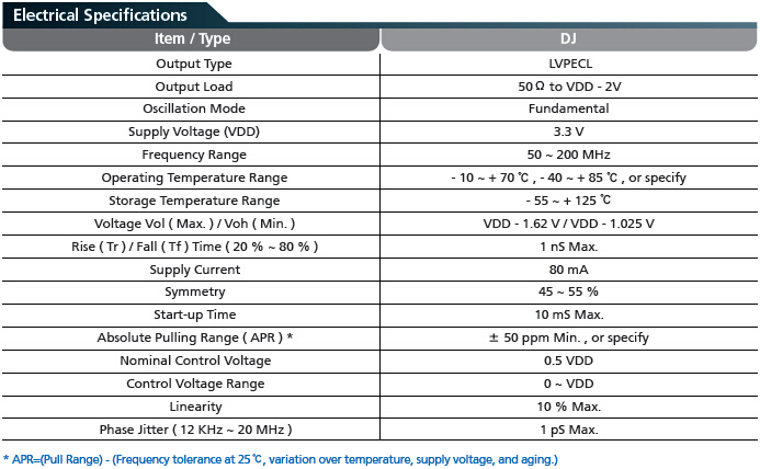 DJ,DR,3225mm有源晶振,壓控晶體振蕩器,TXC石英晶振,壓控晶體振蕩器(VCXO),基本解決方案,LVPECL輸出,輸出頻率50兆赫到200兆赫.優(yōu)秀的低相位噪聲和抖動,可用三態(tài)函數(shù),應(yīng)用程序:SDH / SONET、以太網(wǎng)、基站,通過無鉛認(rèn)證/ Pb免費(fèi).