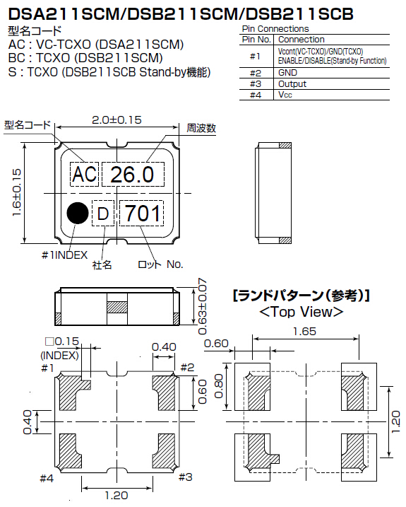 DSA211SCM振蕩器,VC-TCXO晶振,KDS晶振代理商,“1XXC26000HBA”頻率范圍12.288MHz~52.0MHz,小型SMD封裝2.0*1.6*0.63mm,低電壓1.7V~3.5V,頻率溫度穩(wěn)定值±1.5×10-6,低相位抖動(dòng),主要用于攜帶電話,GPS,GMS,其他無線通信設(shè)備中.