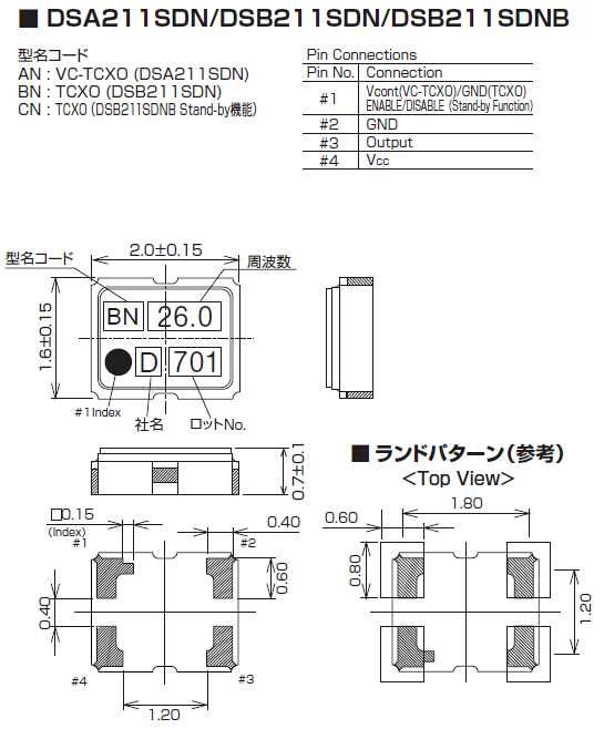 DSA211SDN貼片晶振,VC-TCXO振蕩器,KDS小尺寸晶振,頻率范圍12.288MHz~52.0MHz,小型SMD封裝2.0*1.6*0.63mm,低電壓1.68V~3.5V,頻率溫度穩定值±1.5×10-6,主要用于攜帶電話,GPS,GMS,其他無線通信設備中.小尺寸的貼片石英晶振,目前生產上采用了高技術的封裝模式,光刻石英晶片技術,并且通過結合以往低速滾筒倒邊去除晶片的邊緣效應,在實際操作中機器運動方式設計、滾筒的曲率半徑、滾筒的長短、使用的研磨砂的型號、多少、填充物種類及多少等各項設計必須合理.