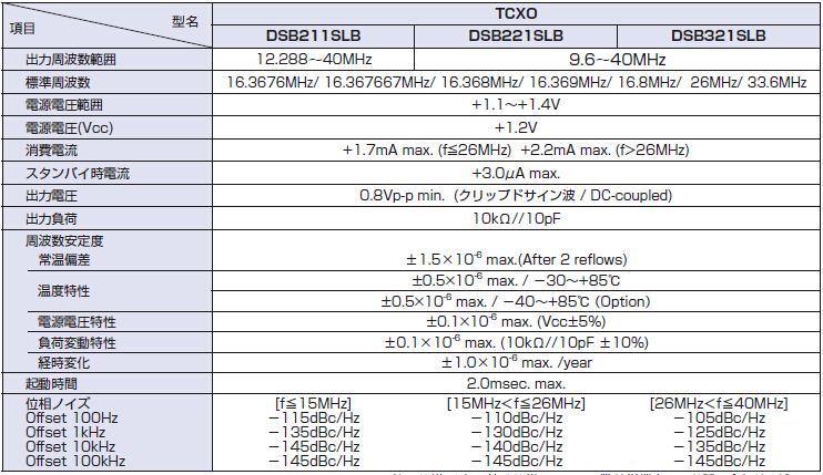 日本大真空株式會(huì)社,DSB211SLB(TCXO)晶振,車載導(dǎo)航系統(tǒng)晶振,頻率范圍12.288MHz~40.0MHz,小型SMD封裝2.0*1.6*0.63mm,低電壓1.1V~1.4V,頻率溫度穩(wěn)定值±1.5×10-6,低相位抖動(dòng),主要用于攜帶電話,GPS,GMS,其他無線通信設(shè)備中.