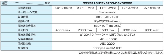 KDS晶振,貼片晶振,DSX320G晶振,超小型表面貼片型SMD晶振,最適合使用在汽車電子領(lǐng)域中,也是特別要求高可靠性的引擎控制用CPU的時(shí)鐘部分.低頻晶振可從7.98MHz起對應(yīng),小型,超薄型具備強(qiáng)防焊裂性,石英晶體在極端嚴(yán)酷的環(huán)境條件下也能發(fā)揮穩(wěn)定的起振特性,產(chǎn)品本身具有耐熱,耐振,耐撞擊等優(yōu)良的耐環(huán)境特性,滿足無鉛焊接以及高溫回流溫度曲線要求,符合AEC-Q200標(biāo)準(zhǔn).
