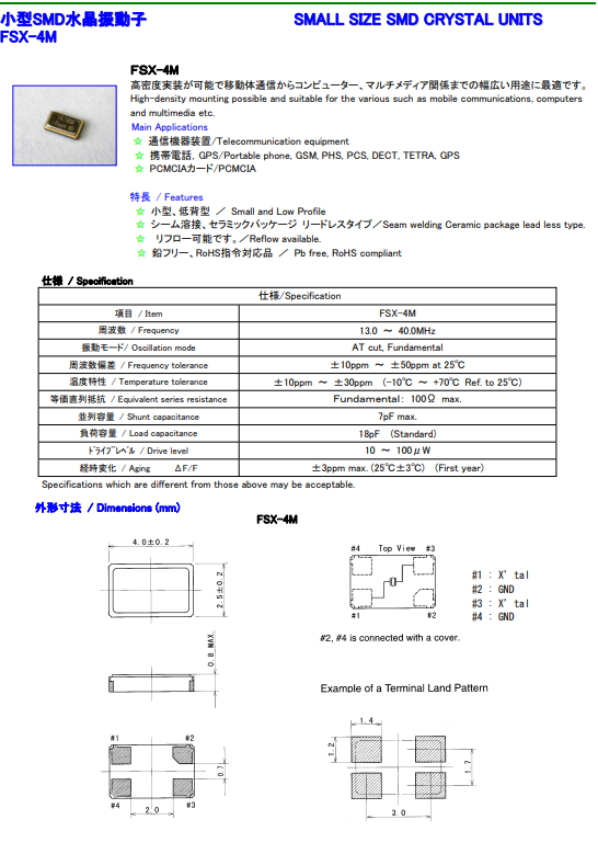 | 富士晶振 | 單位 | FSX-4M晶振 | 石英晶振基本條件 |