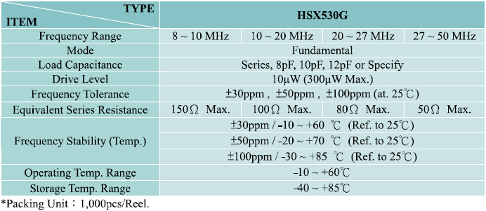 HELE加高原裝正品,HSX530G貼片晶振,無線模塊晶振,尺寸大小5.0*3.2*1.4mm,頻率范圍7.372 to 80.0MHZ,工作溫度-10~+60℃耐高溫環(huán)境,小而薄的包和優(yōu)越的耐熱玻璃密封,本產(chǎn)品適用于敵人回流焊接生產(chǎn)過程中,精度高和優(yōu)異的耐熱性和可靠性.