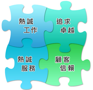 熱誠工作,追求卓越,熱誠服務(wù),顧客信賴