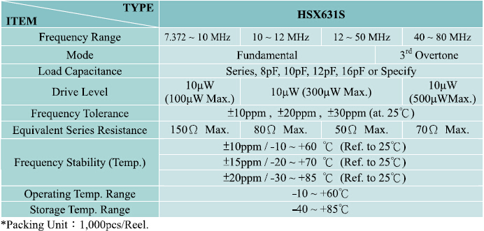 加高晶振特點(diǎn),家用電冰箱晶振,HSX631S諧振器,尺寸大小6.0*3.5*1.0mm,頻率范圍7.372 to 80.0MHZ,工作溫度-20~+70℃耐高溫環(huán)境,三態(tài)函數(shù)應(yīng)用于視覺的產(chǎn)物.貼片石英晶體,體積小,焊接可采用自動貼片系統(tǒng),產(chǎn)品本身小型,表面貼片晶振,特別適用于有小型化要求的電子數(shù)碼產(chǎn)品市場領(lǐng)域,因產(chǎn)品小型,薄型優(yōu)勢,耐環(huán)境特性,包括耐高溫,耐沖擊性等,在移動通信領(lǐng)域得到了廣泛的應(yīng)用.
