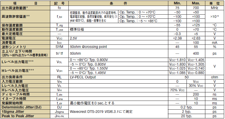 日本京瓷株式會社KC7050Y-P2,KC7050T-P2,KC7050P-L2晶振,KC7050T-L2,KC7050P-H2振蕩器,輸出頻率75.0MHZ~700.0MHZ,電源電壓2.5V,微型陶瓷外殼,與縫焊高度可靠LV-PECL輸出,優秀的抖動性能,低消耗電流,表面貼片型產品(可對應回流焊)無鉛產品.滿足無鉛焊接的回流溫度曲線要求.