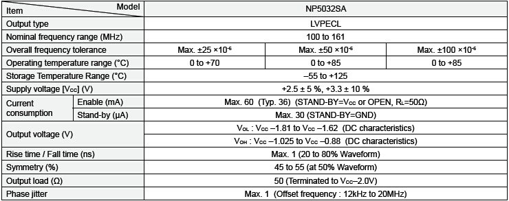 日本NDK晶振代理商,NP5032SA振蕩器,NP5032SB有源晶振,尺寸封裝5.0×3.2×1.2mm電源電壓2.5V~3.3V,LVDS輸出水平,低消費電流(36mA Typ.),低相位抖動(0.15ps Typ.@156.25MHz).