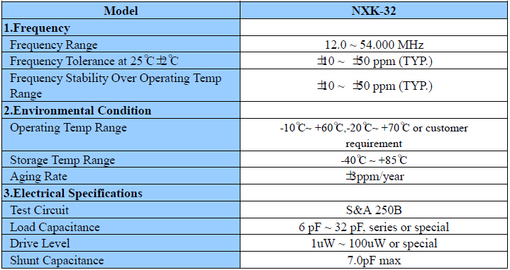 NXK-32石英晶體諧振器,進口NSK晶振,電子密碼鎖晶振,尺寸大小3.2*2.5*0.75mm,頻率操作范圍12.0 to 54.0MHZ,工作溫度-20~+70℃耐高溫環境,無縫焊接具有,優良的可焊性,符合無線環保要求,該款SMD振蕩器主要應用于:PCMCIA卡,CCD,便攜式電,無線局域網.