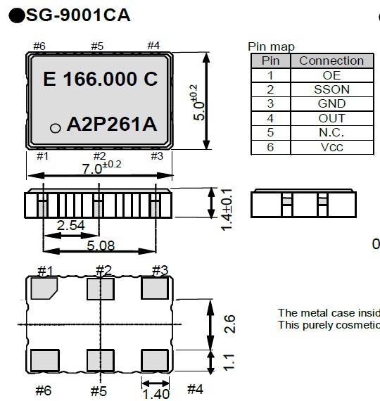 SG-9001CA可編程晶振,石英晶體振蕩器,EPSON打印機晶振,“SG-9001CA C20P 50.0000MC”外部尺寸7.0×5.0×1.4mm,頻率范圍10.0MHz to 166.0MHz,電源電壓3.3V Typ,頻率溫度特征±2.0×10-6Max,應用手機(CDMA,WCDMA,LTE),擴展比率范圍可編程選擇(中心或下部擴展,6個值),高精度和高頻率的穩定性能,非常好的減少電磁干擾的影響,是民用無線數碼產品最好的選擇,符合RoHS/無鉛.