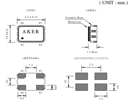 封裝 | 金屬面貼片 | 尺寸 | 3.2*2.5*1.2mm |