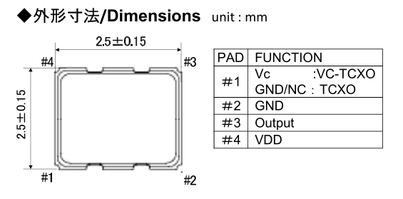 NAKA晶振,壓控溫補振蕩器,TC250壓電石英晶振.貼片石英晶體,體積小,焊接可采用自動貼片系統,產品本身小型,表面貼片晶振,特別適用于有小型化要求的電子數碼產品市場領域,因產品小型,薄型優勢,耐環境特性,包括耐高溫,耐沖擊性等.