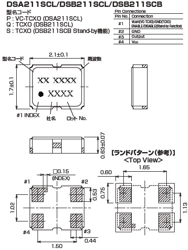 大真空株式會社,石英晶振DSB211SCL,TCXO溫補(bǔ)振蕩器,頻率范圍13.0MHz~52.0MHz,小型SMD封裝2.0*1.6*0.72mm,寬電壓范圍對應(yīng)電源電壓+1.7~+3.5V使用可能,選擇的信號和CMOS輸出,低相位噪聲,防濕包裝管理.