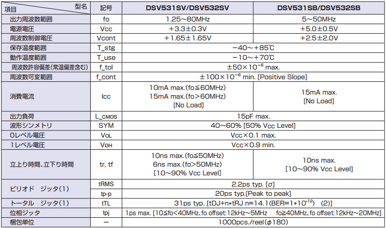 KDS石英晶體振蕩器,DSV532S貼片晶振,壓控晶振,5032尺寸、厚度1.2mm、小型SMD-VCXO,雖然小型但確保充足的可變量,頻率發(fā)生線性變化的模擬類型VCXO,主要用于DVD、數(shù)字TV、STB、ADSL、寬帶調(diào)制解調(diào)器、基干傳輸用.