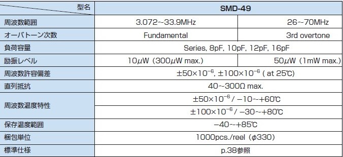 KDS水晶振子,SMD49貼片晶振,石英晶體諧振器,頻率范圍3.072MHz~70.0MHZ,可以支持從低溫到高溫的廣泛運行溫度范圍,頻率穩定度卓越,耐撞擊性、耐振性等高可靠性,支持自動貼裝、回流焊,依據AEC-Q200,無鉛RoHS/ELV對應.