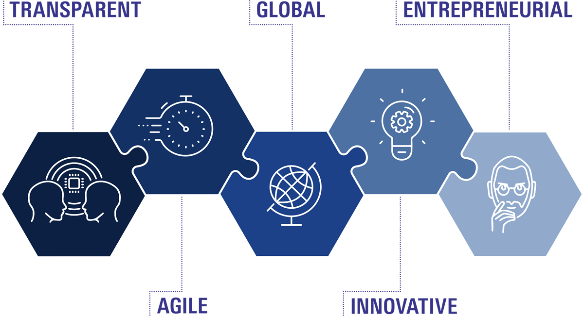 員工應充分了解領導團隊的戰略和政策、公司的現狀以及每個業務組織的問題和想法。這也與下文所述的“Agile”和“Entrepreneurial”元素緊密相連,我們相信這是每個個人和組織成功的基礎。