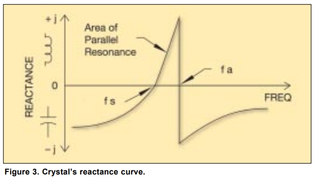 如圖3所示。 在圖3中,標(biāo)記為fs的點是運動的電容C1諧振并抵消運動電感L1。校準(zhǔn)到fs所需頻率的晶體稱為系列水晶。校準(zhǔn)工作在平行區(qū)域的晶體共振稱為平行晶體。這里需要注意的是串聯(lián)晶體和并聯(lián)晶體沒有區(qū)別, 只有在制造商校準(zhǔn)的地方。