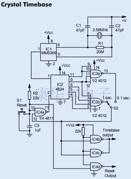 板載振蕩器和17級分頻器組成IC1.如圖所示,通過連接標準的3.58MHz電視色同步晶體,可在IC輸出的引腳1上產生60Hz方波的精確信號源.然后將這些脈沖饋入4024七級波紋計數器IC2.它的輸出直接連接到IC3中的不同門,IC3是雙四輸入NAND門.根據脈沖選擇開關S2占據哪個位置,這些門之一將提供選定寬度的輸出/復位脈沖. 使用不同的電路設計制造出來的振蕩器性能,功能,應用,封裝尺寸都不一樣,現在也有越來越多的新型電路出現,康華爾電子后續會再為大家總結一些相關的信息.還想了解哪方面的晶振知識,可以到http://www.mingdakt.cn/官網上留言,我們竭誠為廣大新老客戶服務.