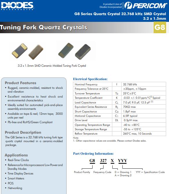 3215mm/G83270025/智能電表專用/32.768KHZ/Diodes/G8 參數(shù)表
